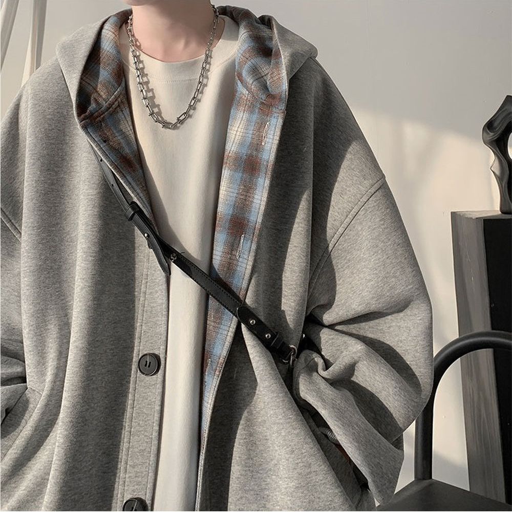 Fashion Men's Stitched Plaid Hooded Sweatshirt Trendy Cardigan Jacket
