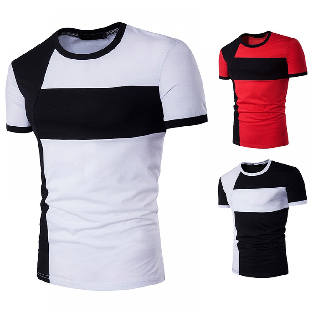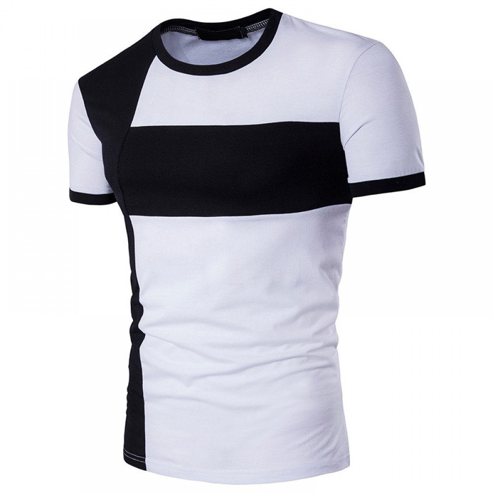 New Summer Men's Short-Sleeved T-Shirt Mens Contrast Striped Slim Casual T-Shirt