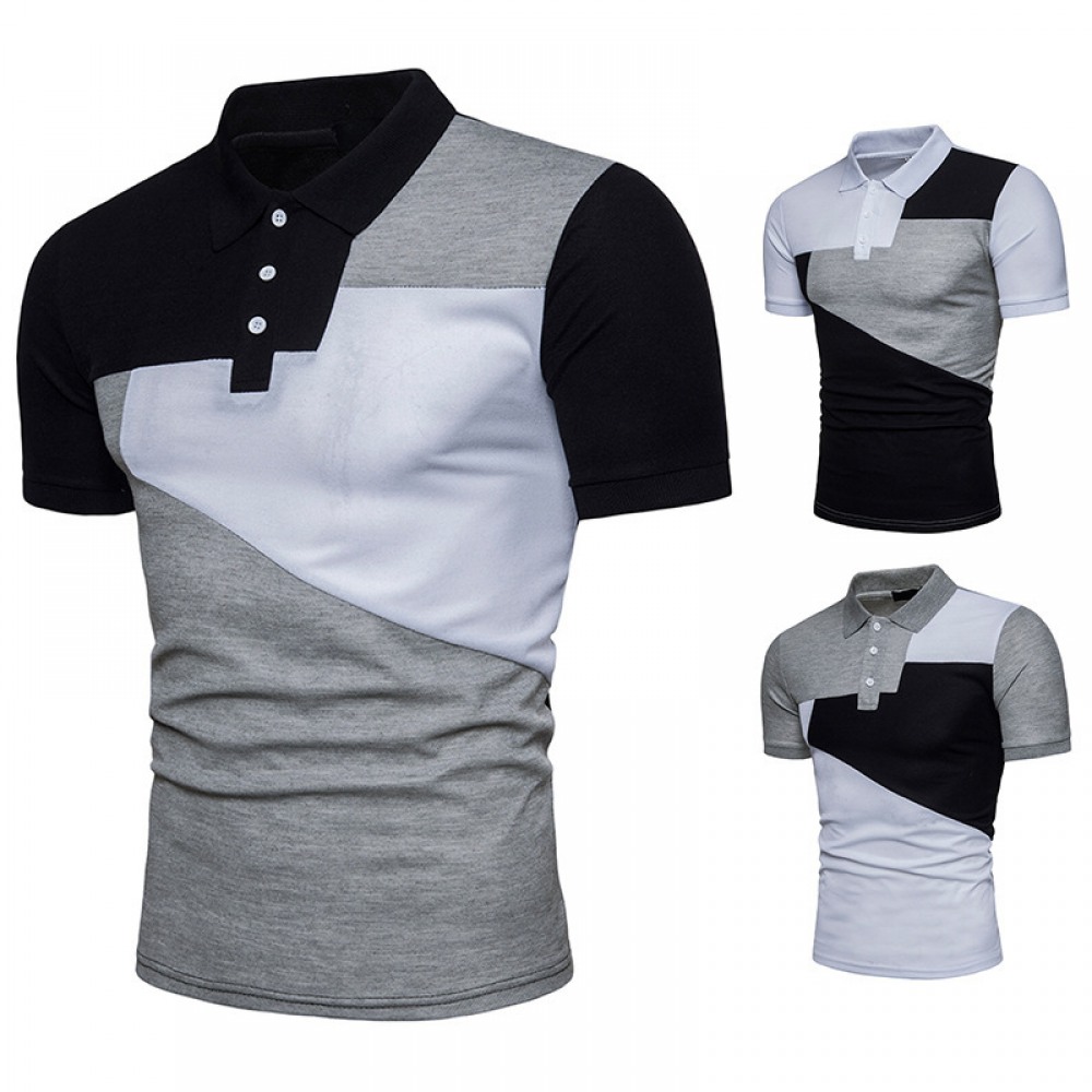 New Men's Fashion Large Size Color Matching Short Sleeve Polo
