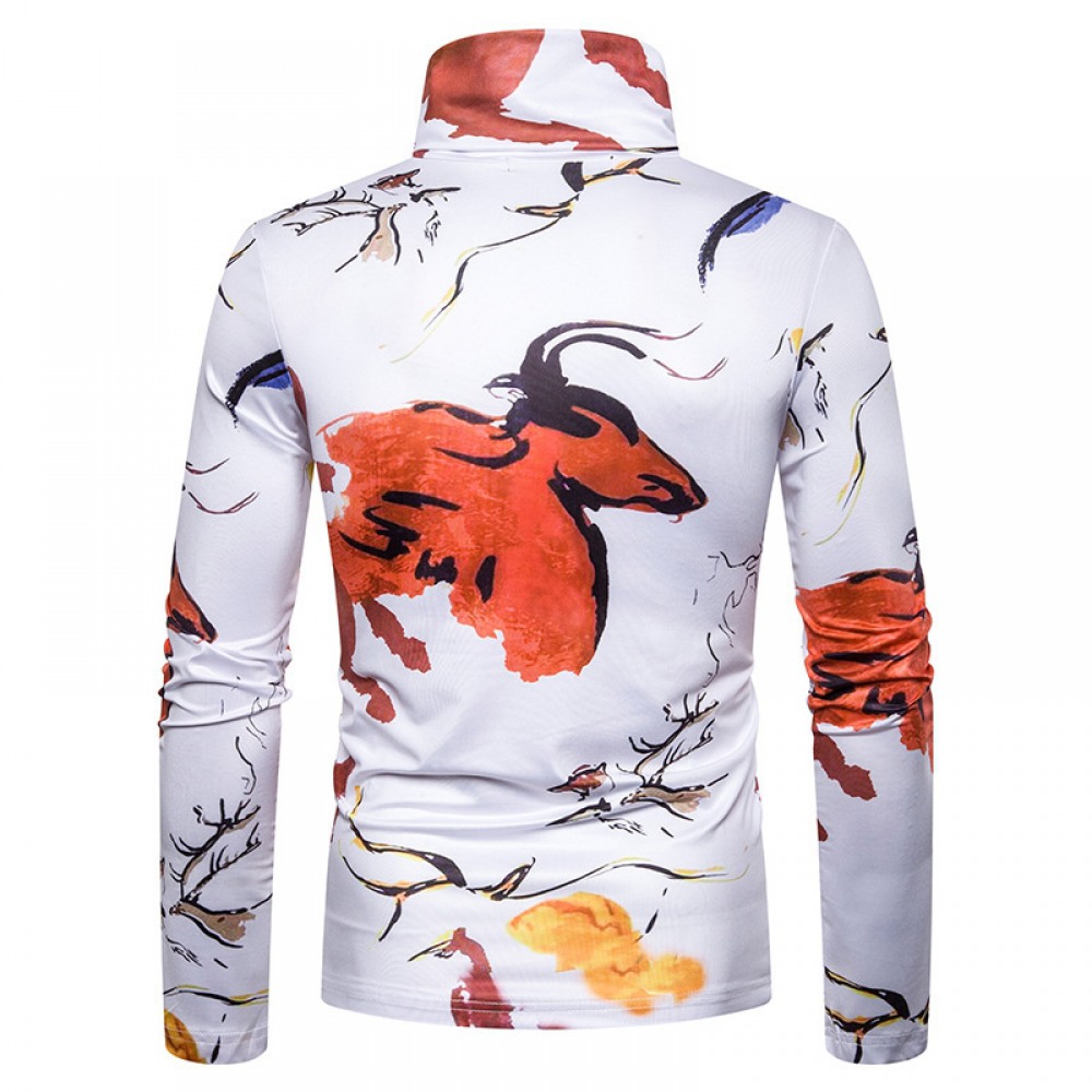 New Men's Large Size 3D Animal Ink Print High Neck Long Sleeve T-Shirt Bottoming Shirt