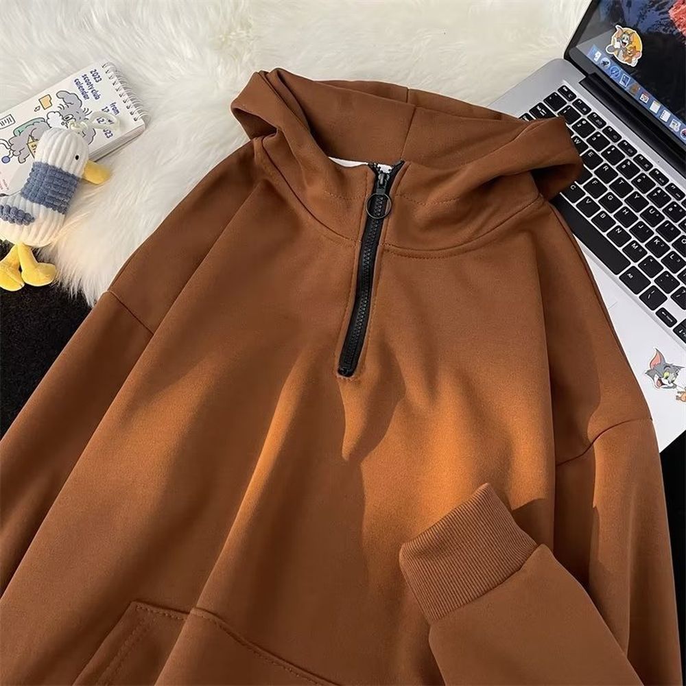 Half Zipper Hooded Fleece Sweatshirt Men's Pullover Sports Casual Jacket